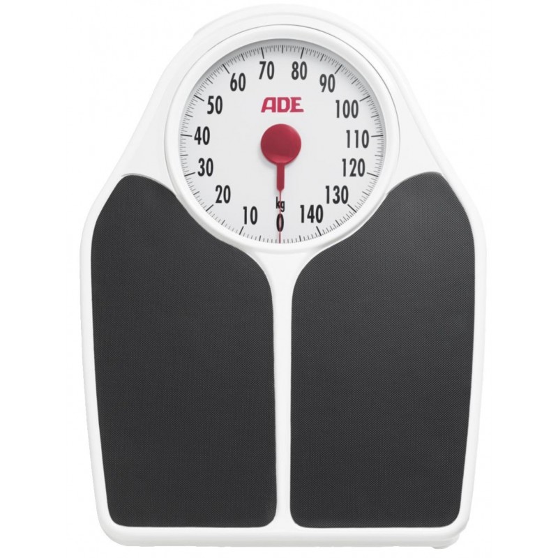 MECHANICAL FLOOR SCALE • Large graduated circular face • Anti-slip coating • Graduation: 500gr • Capacity: 160Kg • Dimensions tray: 32 x 36cm