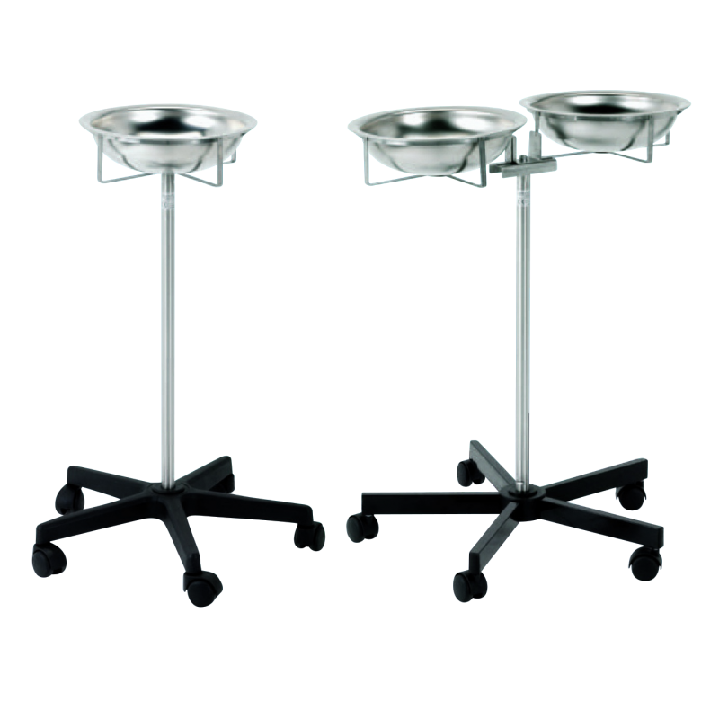 BOWL STAND • Structure made of stainless steel • Stainless steel base star shape 5 wheels diam.50mm • Height : 80cm • Delivered with bowl diam.32cm capacity 3L.MO-104610-1 : 1 Bowl stainless steel MO-104610-2 : 2 Bowls stainless steel