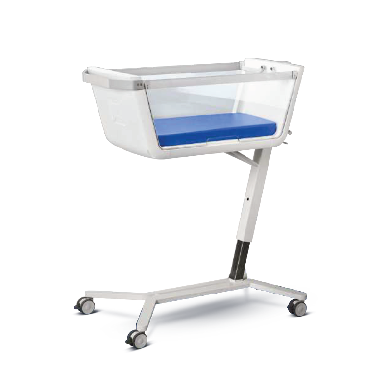 • Tubular steel construction with epoxy coating • Trendelenburg position • Removable plastic crib • With a 50mm mattress • 4 Castors 75mm diam., 1 with brake • Dimensions: 84 x 43 x 94cm