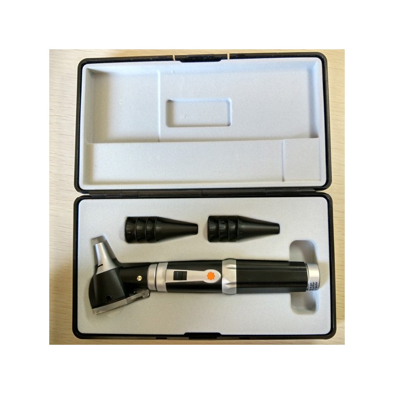 DIRECT ILLUMINATION OTOSCOPE ● Adopt LED technology and direct illumination ● Four tips: 2,4mm, 3mm, 4mm, 5mm ● Clear and scratch-resistant viewing window with 3 X magnification ● Ergonomic design with painless insertion to the ear...