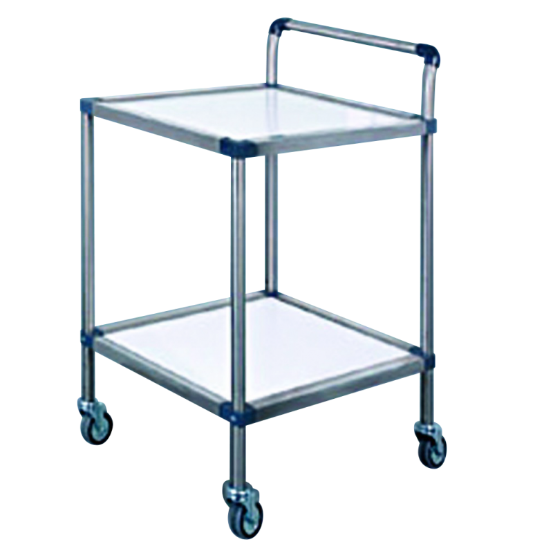 DRESSING TROLLEY • Constructed from square stainless steel tubes • 2 shelves with upstands on four sides • 1 push handle • 4 castors 80mm diamMO-100201 : 70 x 50 x 80 cm MO-100202 : 90 x 60 x 80 cm