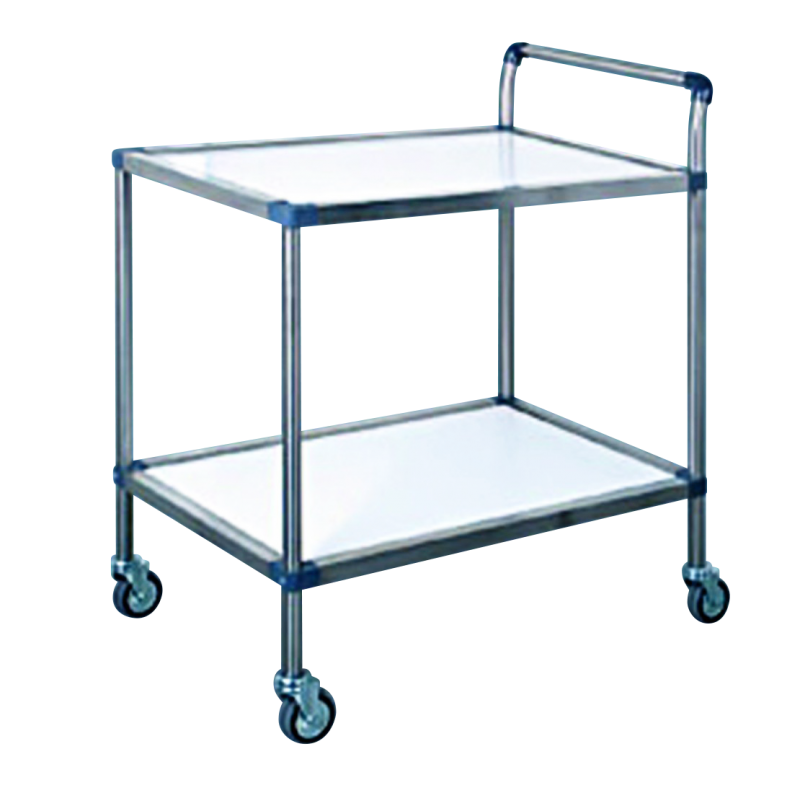 DRESSING TROLLEY • Constructed from square stainless steel tubes • 2 shelves with upstands on four sides • 1 push handle • 4 castors 80mm diamMO-100201 : 70 x 50 x 80 cm MO-100202 : 90 x 60 x 80 cm