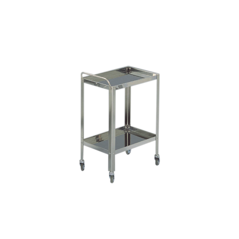 DRESSING TROLLEY • With 2 removable trays • Constructed from stainless steel • Push handle one side from stainless steel • Mounted on castors 80 mm • Two removable trays from stainless steel • 61 x 43 x 78 h cm