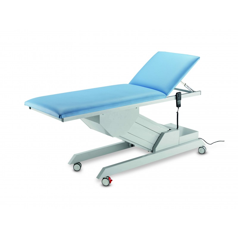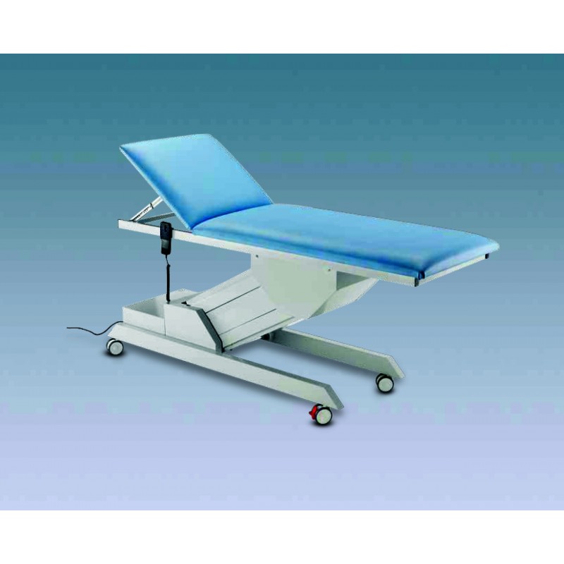 ELECTRICAL EXAMINATION COUCH WITH ADJUSTABLE HEIGHT 2 sections • Structure made of époxy painted steel oval tubes • Delivered dismantled • Adjustable backrest by rack • Blue fireproof (Class 1 IM) padding made of high density...