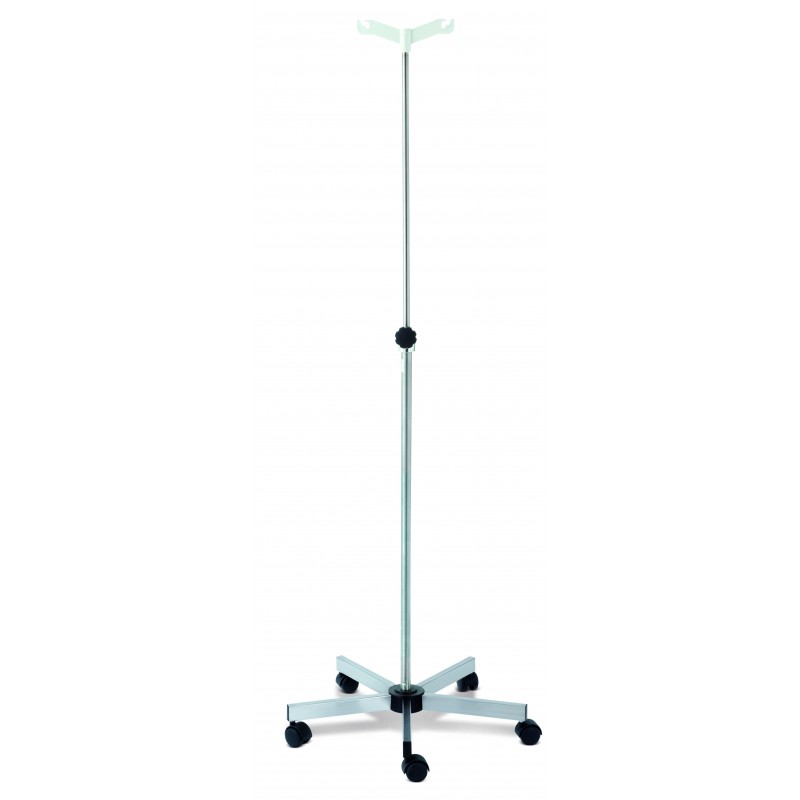 EPOXY PAINTED I.V. STAND • Epoxy painted steel tube - silver grey colour • Epoxy painted steel five spoke base on castors - black colour (dismantled) • Ajustable height : 160 à 220cm • 2 plastic hooksACCESSOIRES : MO-100060-PF :...