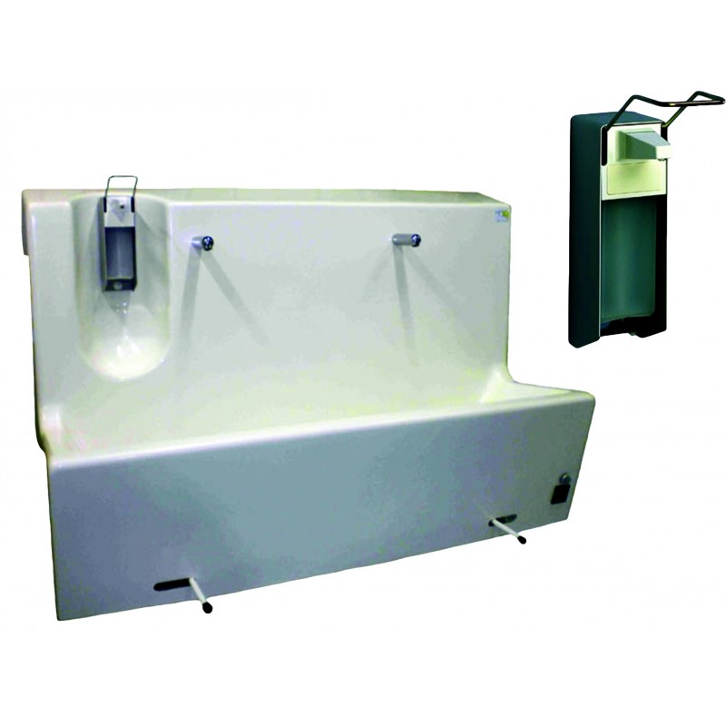 HOSPITAL WATER UNIT • One water station • Mechanical operated without water treatment. • Polyester bassin with integrated plug • Free flow • Water post with knee mechanic control • Deep basin avoiding splashes • Autoclave siphon • A...