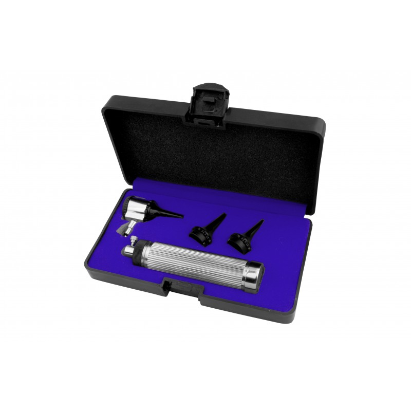 LED ENT KIT Supplied in a case including: • 2,7 V Led illumination • Chrome plated battery handle for 2 C batteries (not included) • Otoscope head Fastlock fitting • Chrome plated otoscope head • Protective movable lens 3x on plastic...