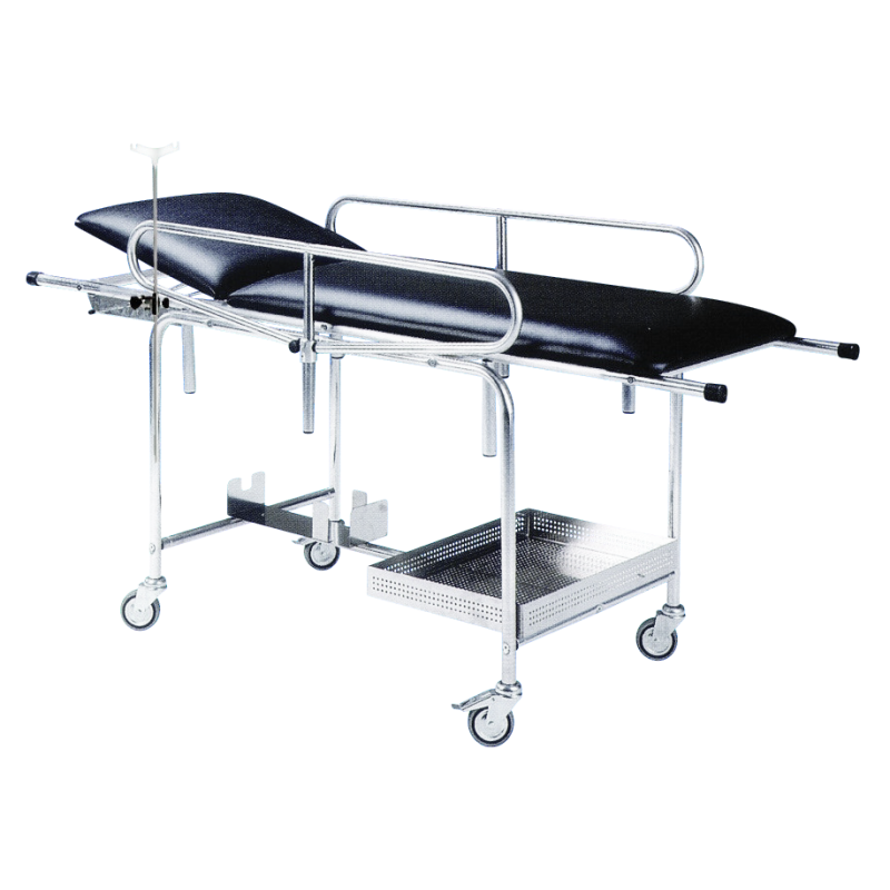 PATIENT TROLLEY FOR AMBULANCE • Constructed from tubular steel • Padded mattress fireproof and washable plastic material. • Adjustable backrest • 4 Castors 80mm swivelling, 2 with brake system. • Inclinations Trendelenburg -...