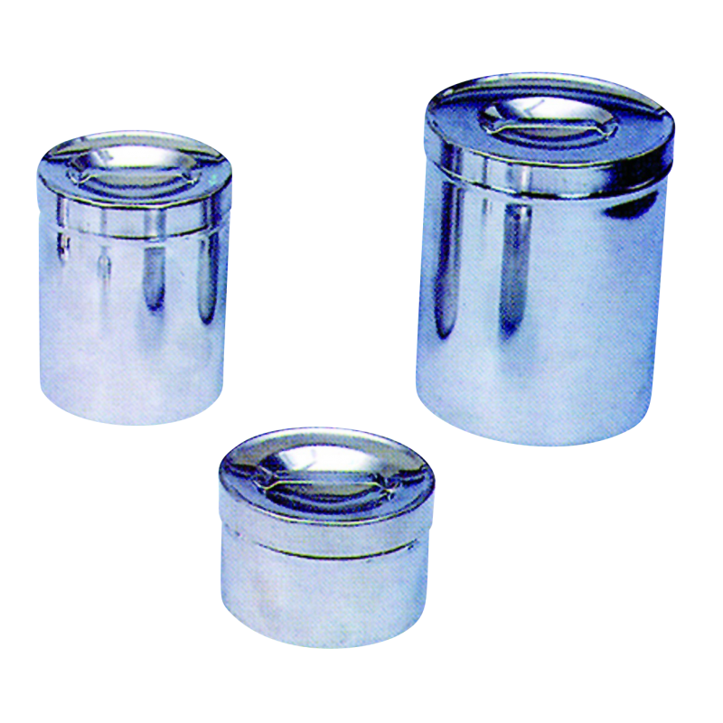 S.S. JAR FOR COTTON. Entirely made of stainless steel• Lid with knob : IN-101150 Ø 10 x 10cm IN-101151 Ø 12 x 12cm IN-101152 Ø 15 x 15cm • Hinged lid : IN-101153 Ø 10 x 10cm IN-101154 Ø 12 x 12cm IN-101155 Ø 15 x 15cm