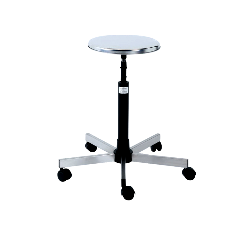 Surgeons stool • With screw elevation • Construction from stainless steel • Seat stuffed with strong plastic washable and flame retardant. • Base with foot rest • With castorsMO-100310 : Model without castors