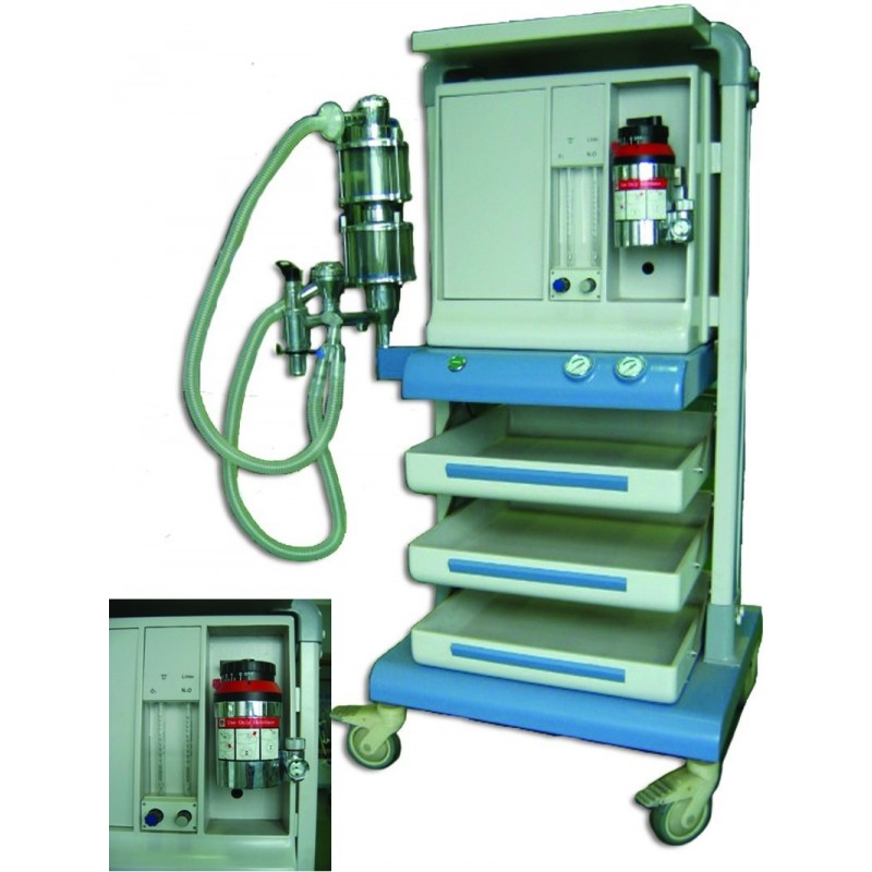 This machine is equipped with a breathing system with ISO standard connectors and high-precision vaporiser, suitable for closed, semi-closed and semi-opened inhalation and non-inhalation anesthesia in all levels hospitals.