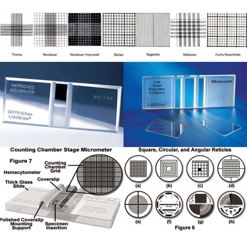 • • Single ruling • Without clamps LAB-130100-T Cellule de Thoma LAB-130100-NB Cellule de Neubauer LAB-130100-B Cellule de Bürker LAB-130100-NG Cellule de Nageotte LAB-130100-FR Cellule de Fuchs Rosenthal LAB-130100-M Cellule...