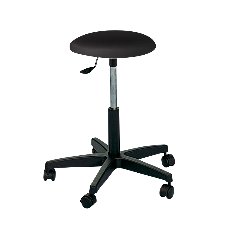 Surgeons stool • With screw elevation • Construction from stainless steel • Seat stuffed with strong plastic washable and flame retardant. • Base with foot rest • With castorsMO-100310 : Model without castors